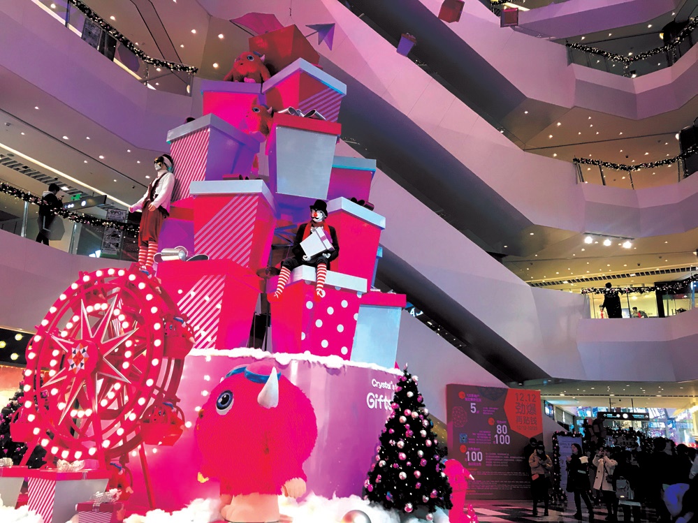 一走进位于陕西南路附近的环贸iapm 商场,富有圣诞气息的音乐就直勾勾地往耳朵里钻。印象里环贸iapm 商场每一年的圣诞装饰都有一个独一无二的主题,去年是“圣诞老人欢乐镇”,今年则是梦幻冰雪场景为主题的“熊抱冰雪圣诞乐园”。五彩缤纷的圣诞树、憨态可掬的炫舞北极熊、神秘温馨的圣诞小屋等立体装置让整个商场中庭显得童趣十足。