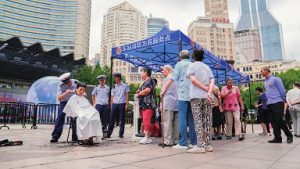 2019年9月20日,清晨。天色刚刚显出一缕青白,杨长发就起床了。虽然受伤的脚踝还没痊愈,但他还是坚持着,因为这天是他第13年的“为民服务日”。现任上海市消防救援总队黄浦支队车站中队中队长助理、一级消防士杨长发加入消防队伍14年,从遥远的广西来到上海。第二年开始,就加入了车站中队1999年就开始的“为民服务”活动。如今他是中队为民服务队的第六代理发师。杨长发很看重这个特殊的称谓,20年,延续到他,已经是第六代。可在当时,他是有点犯难的。在火场,高高大大的杨长发是员猛将,他握着水枪的双手孔武而且带劲。现在,握消防水枪的手要拿理发剪刀了,感觉横竖不听使唤。不过,杨长发不是轻易放弃的人,既然领导定了他,就得接好这个班。他专门去理发店拜师学艺,顺带着给人家普及消防知识。为老人理发是“为民服务”的重头戏,所以留给他的时间并不多,速成是领导对他的要求。短短两周下来,理发剪刀在杨长发手里就听话多了,看上去也有点样子了。领导对他说,小杨,我就知道你粗中有细,火场上要猛,为老百姓服务也得有把刷子。但初次上阵,杨长发心里还是忐忑。大多数老人的头发藏污纳垢,有的甚至还能捻出团来,当然是有些恶心的。这个杨长发能忍,为民服务就要有一颗诚挚的心,即便面对某些老人对他的技艺流露的不满,也得忍。那天他为一位老先生理发,陪同在一旁的老伴却操着一口东北话叽叽呱呱地没个完,对老先生的发型表示异议。弄得杨长发非常尴尬。也有老人为杨长发打抱不平了,你看人家消防员辛辛苦苦,站了大半天免费为大家理发,你也得体谅人家。虽然这样,杨长发还是觉得自己脸上发烧似的。无论如何,还是自己技艺不到位,怪不得老人家埋怨。于是他就见缝插针地练,甚至梦里都有理发的事。几年下来,杨长发理发技艺大增,每月排队理发的老人也越来越多,结束的时间到了,有老人惋惜地说,我一大早从宝山赶来的,也有子女推着轮椅送老人过来,都是冲着杨长发来的。杨长发说,大家都不要着急,我一定给大家都理完。老人们感叹,这个小囡真好啊。杨长发听着老人们的夸奖,心里甜滋滋的。每当他看到陈列在中队队史馆里那个传承了40年的老式理发箱,他就有一种由衷的自豪,他庆幸通过自己的努力成为老人们认可的理发师。这么多年来,每月的20号,他把理发工具摆开的时候,听着电动理发器发出的欢笑和着老人们的啧啧赞叹。这是他的欢乐时光。更让杨长发高兴的是,有些老人一边理发,一边还会提出些有关消防的疑惑。杨长发就在理发剪的嚓嚓声中,给他们讲讲消防知识。理好了头发,还学到了知识,老人心满意足。回到家里,他们就可以给孙辈“现学现卖”一番,或者出点难题考考他们。