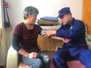 和杨长发一样,每个月中队卫生员杨铭明的测血压是另一个深受老人喜爱的重磅项目,也是杨铭明必做的功课。一位老人给他的印象很深。老人说孙子前后给他买了三个血压计,但因为是电子血压计,他对数值不放心,所以不怎么用。他还是钟情老式的手动血压计,最关键的是为他量血压的小杨让他放心,靠谱,一定不会错。所以每月20日必到。郑阿婆也是杨铭明的常客。那天杨铭明为郑阿婆量好血压,对她说,“阿婆,你的血压很好,气色比上个月好多了。”郑阿婆脸上的皱褶拧成了一朵花。“哎呀,小杨啊,我每个月来看你一次,心里就开心。说实话,量血压不是最重要的,重要的是和你说说话,拉拉家常呀,心里就畅快多啦。”类似郑阿婆这样的话,杨铭明听到很多。他想,现在很多老人都比较孤独,心理上更需要小辈的关爱,但是,他们的小辈都在各自的工作岗位上为未来奋斗,自己是卫生员,为老人服务其实也含着对他们的心理关怀。因此就不仅仅是量血压、测血糖的事了。而上门服务,也是车站中队为民服务的一个特色。